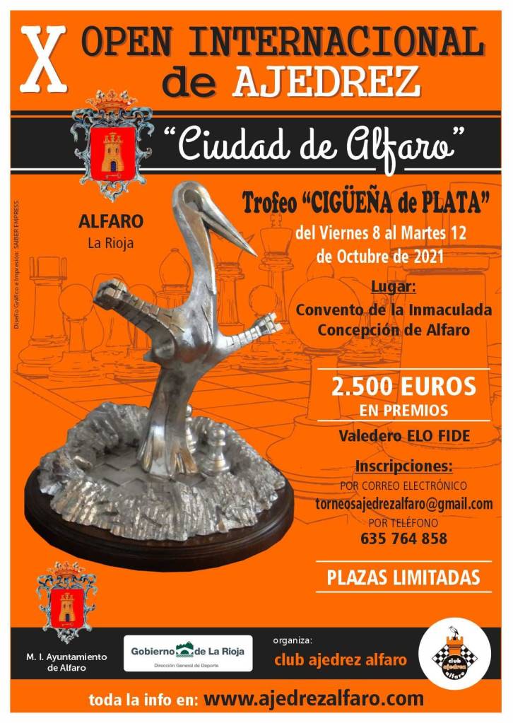 A falta de mes y medio para su celebración, el X Open Internacional Ciudad de Alfaro Torneo Cigüeña de Plata tiene prácticamente completado el aforo. Desde la organización hemos marcado un número límite de 115 jugadores. A día de hoy los inscritos pasan de 100. Si se recibieran solicitudes una vez completadas todas las plazas quedarían en lista de espera.