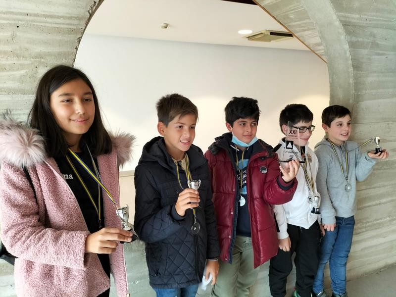 La cosa estaba muy difícil en el sub 16, con un rival muy fuerte, Rafael Matas, un excelente muchacho que mantiene buenísima relación con nuestros jugadores. Su victoria también fue incontestable, pero tanto Javier Ortega como Iñaki Docampo le plantaron cara con partidas larguísimas. Javier e Iñaki son otros dos jugadores que han dado un salto de calidad en su juego. Iñaki fue subcampeón y Javier tercer clasificado. Diego Carra es un jugador al que los nervios le suelen jugar malas pasadas, pero cuando se centra y juega exhibe una gran profundidad. Sus dos puntos nos saben a poco, le esperamos en la próxima edición donde ya será de segundo año.