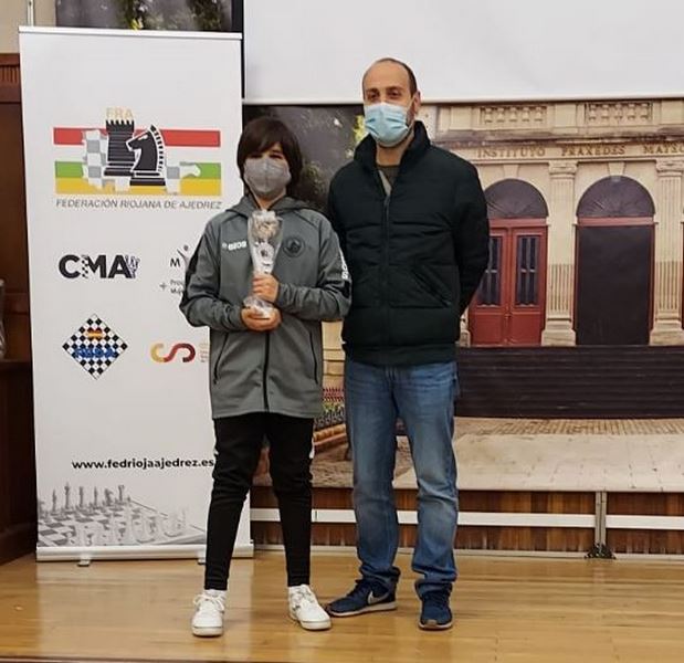 En la categoría sub 12 presentábamos un plantel de chavales en los que tenemos puestas muchas expectativas. Empiezan a incorporar más elementos a su juego, a sus planteamientos de partidas, y a su experiencia con el ajedrez. Nuevamente la mitad de los veintiséis participantes de la categoría eran chavales del club. Y el resultado final, donde los seis primeros clasificados eran niños del Club Ajedrez Alfaro fue espectacular. Aimar Costoso y Ara Aleksayan ganaron todas sus partidas salvo la que les enfrentó entre sí, que acabó en tablas. El empate a puntos en cabeza se decidió en favor de Aimar. Alvaro Valero tuvo una suerte un tanto dispar, perdiéndose alguna partida al final. Esperamos mucho también de Alvaro, tiene un gran potencial. Qué vamos a decir de Carmina, que siempre nos encandila con su gran ilusión, y que este año se está tomando un esfuerzo extra en sus clases, que hay que aplaudir. Oriol es la alegría de las clases, y un jugador que ya ha conseguido controlar esa impulsividad de la que hablábamos en los sub 10. Daniel Pérez ya sabe lo que es ser campeón de la Rioja. Su actuación fue notable y seguro que nos va a sorprender a no tardar mucho. De Alfaro vino Angelo Cordero, un jugador que sin ruido va mejorando paulatinamente, y que como los demás nos va a dar muchas alegrías. En su mismo grupo de clase está Blanca Lara, grupo del que Patxi está muy contento. En este torneo le sorprendió positivamente el juego de Blanca. El que ha dado un salto espectacular en su juego es Levon, con un juego cada vez más completo. Son varios los torneos últimamente en los que se le ha visto a gran nivel. De Marcos Martínez nos alegramos mucho de que su ilusión por el juego vaya a más, lo estamos viendo concentradísimo en sus partidas. Acabó con tres puntos, donde todos sus rivales fueron jugadores del Club Ajedrez Alfaro. Y por último tenemos que mencionar a la campeona, Maitane, a la que últimamente la vemos también muy ilusionada y muy concentrada. Otra alumna que hace un esfuerzo encomiable por asistir a clases.