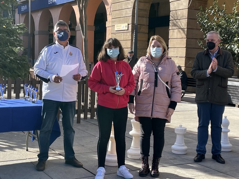 En la categoría B el campeón resultó invicto, el arnedano hizo seis puntos de los seis posibles. El joven cirbonero Matías Ruiz solo cedió el punto con Daniel, y acabó como subcampeón. En tercer lugar un jugador que hacía tiempo que no teníamos ocasión de compartir torneo con él, el calagurritano Pablo Francés, hijo de nuestro monitor Héctor Francés. El corellano Víctor Milagro y el alfareño Daniel Jiménez fueron los sub 10 premiados. El cirbonero Miguel Madurga y el alfareño Iñigo Revilla se hicieron con los trofeos de sub 8. Y el trofeo femenino fue para la alfareña Nora López.