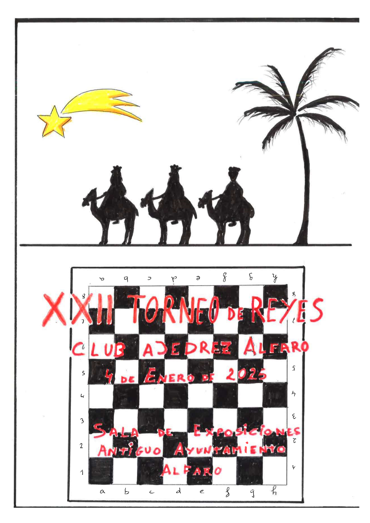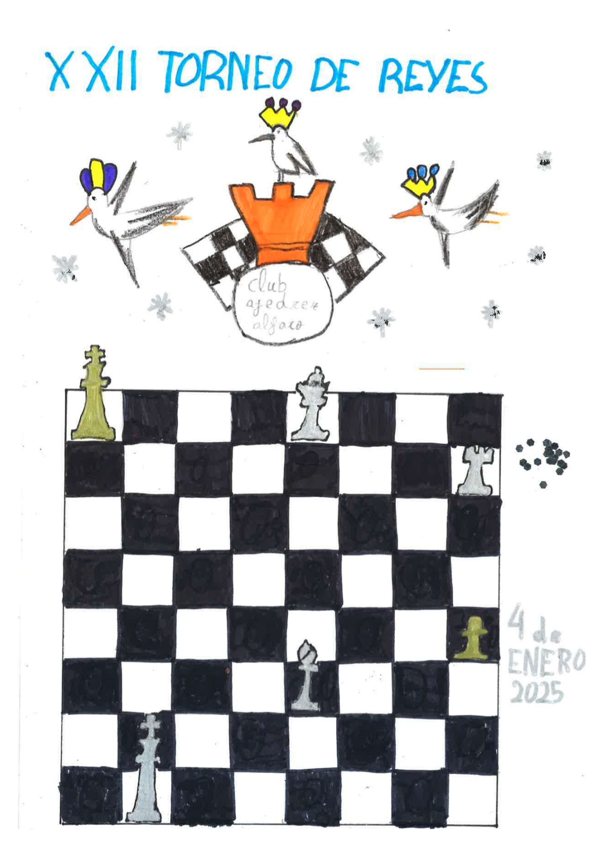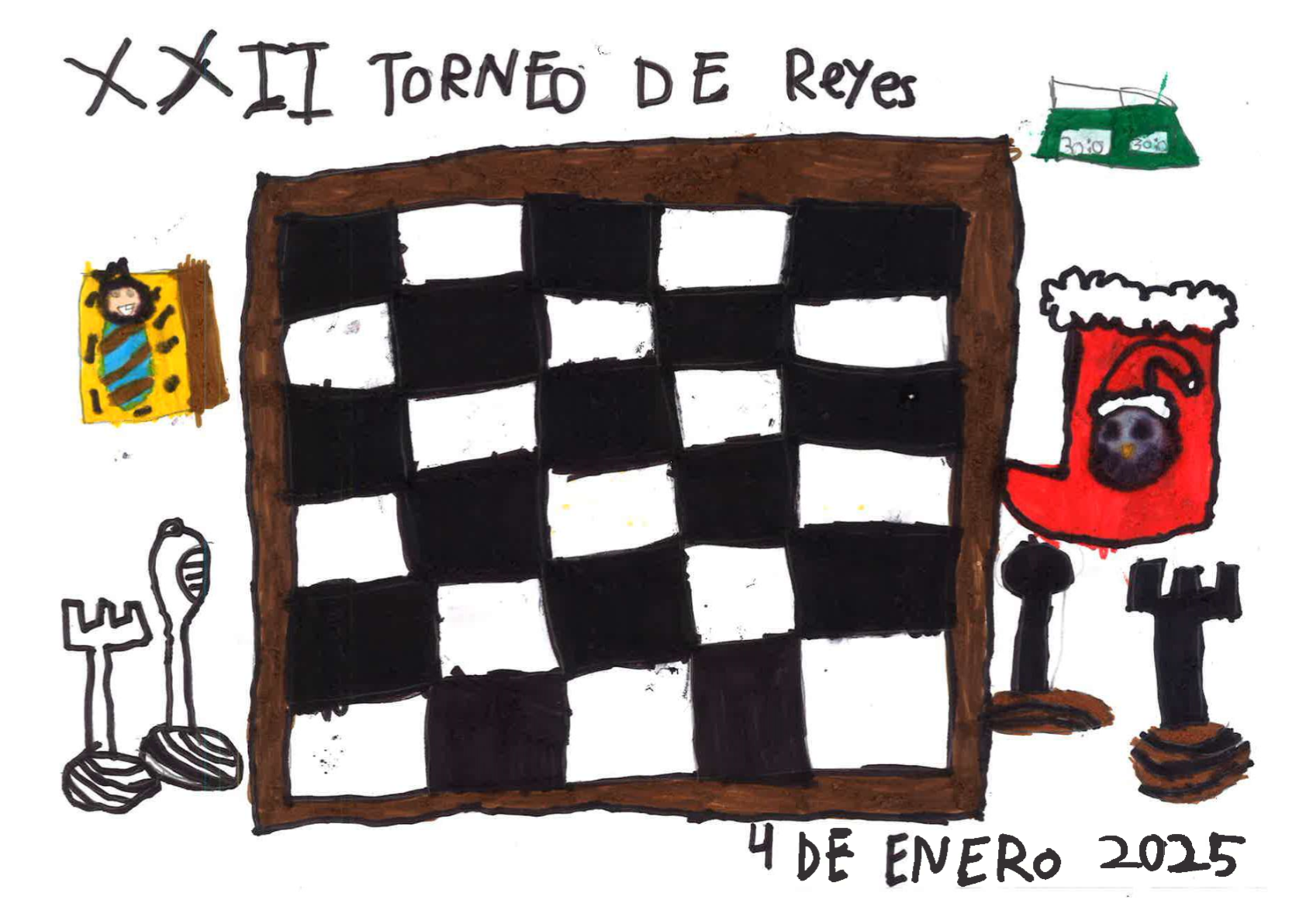 El próximo sábado 4 de enero celebramos con mucha ilusión la XXII edición de nuestro tradicional torneo, especialmente pensado para los más pequeños. Una mañana repleta de ajedrez, diversión y sorpresas, con la clásica chocolatada a mitad del evento y, como siempre, regalos para todos los participantes.