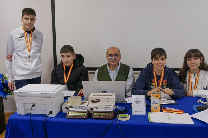 Es habitual que hagamos mención al capítulo del arbitraje. En esta ocasión nuestro incombustible Paco Ródenas, ya toda una institución en el club, tuvo a su disposición un entero equipo de colaboradores en el arbitraje. Los Diego, Sarai, Mateo y Ara, alumnos veteranos que en tiempos participaron en el torneo, en este día no solamente arbitraban sino que también aconsejaban a los más pequeños. Un ejercicio de renovación, siempre presente en todos nuestros acontecimientos, que de forma incesante le da la vida al club.