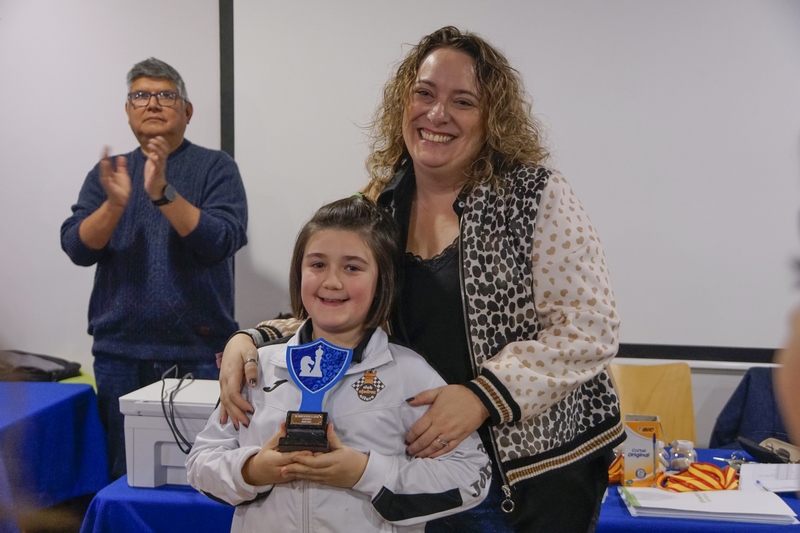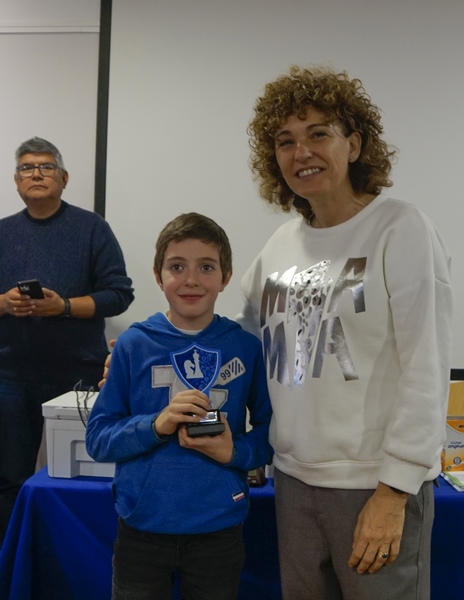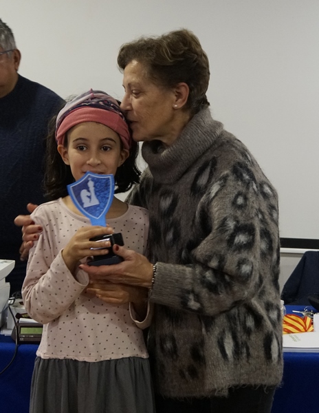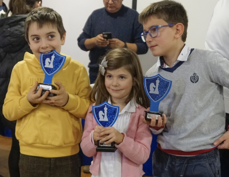 Deberíamos pasar lista a todos los jugadores del torneo, pues todos sin excepción son importantes, como bien resaltó la alcaldesa Yolanda Preciado. Siempre se nos adelanta en los argumentos la excelentísima, clavando siempre con sus palabras lo que nosotros querríamos decir. Tan solo nos quedaremos con algunos nombres. Como el de Daniel Jiménez, un aplicado alumno del Club que ganó la categoría A con pleno de victorias. Su hermana Ana también se llevó un trofeo en la categoría B, el de primer sub 8. Otros dos hermanos que se llevaron a casa su trofeo fueron Víctor y Lucía Carbonell, el mayor brillante tercer clasificado y la pequeña segundo sub 8 en la categoría B. El calagurritano Diego Serrano fue el campeón de esta categoría, seguido del alfareño Javier Lajusticia. Se espera mucho de ambos. Así como también se espera de una niña con una grandísima afición, Maia Difallah, que fue la primera sub 10. El pequeñín Enzo López llegó con el torneo empezado, perdiéndose algunas rondas. Lo que no fue inconveniente para que se adjudicara el trofeo al segundo sub 10. Cuánto nos alegramos por Igea, y por su nuevo monitor, Javier Ortega. Ander Sáenz de Calahorra se coló en este grupo, quedándose son el trofeo al tercer clasificado sub 10. De Arnedo ya conocíamos a algún ciclón en años anteriores, y este año pues tuvimos otro, Leo Terroba, que se llevó el trofeo al tercer sub8. Los premios a las femeninas fueron para tres muy pequeñinas todas, Lia McDermott, Sofía Martínez y Marina Magallón.