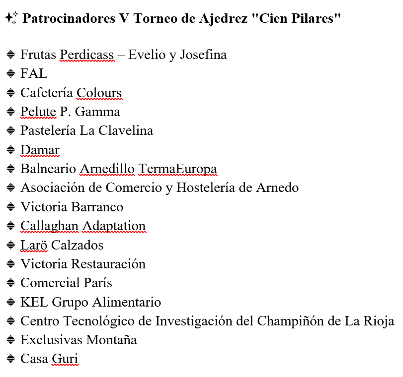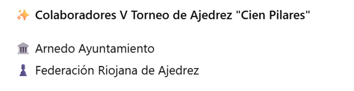 1º El IV Torneo de Ajedrez Cien Pilares se celebrará el sábado 30 de agosto en Arnedo, La Rioja. La organización correrá a cargo del Club Ajedrez Alfaro.