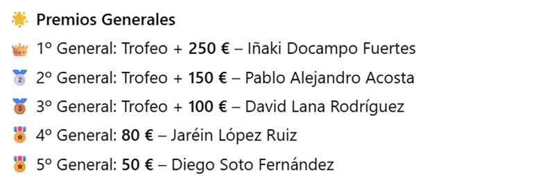 1º General: Trofeo + 250 €